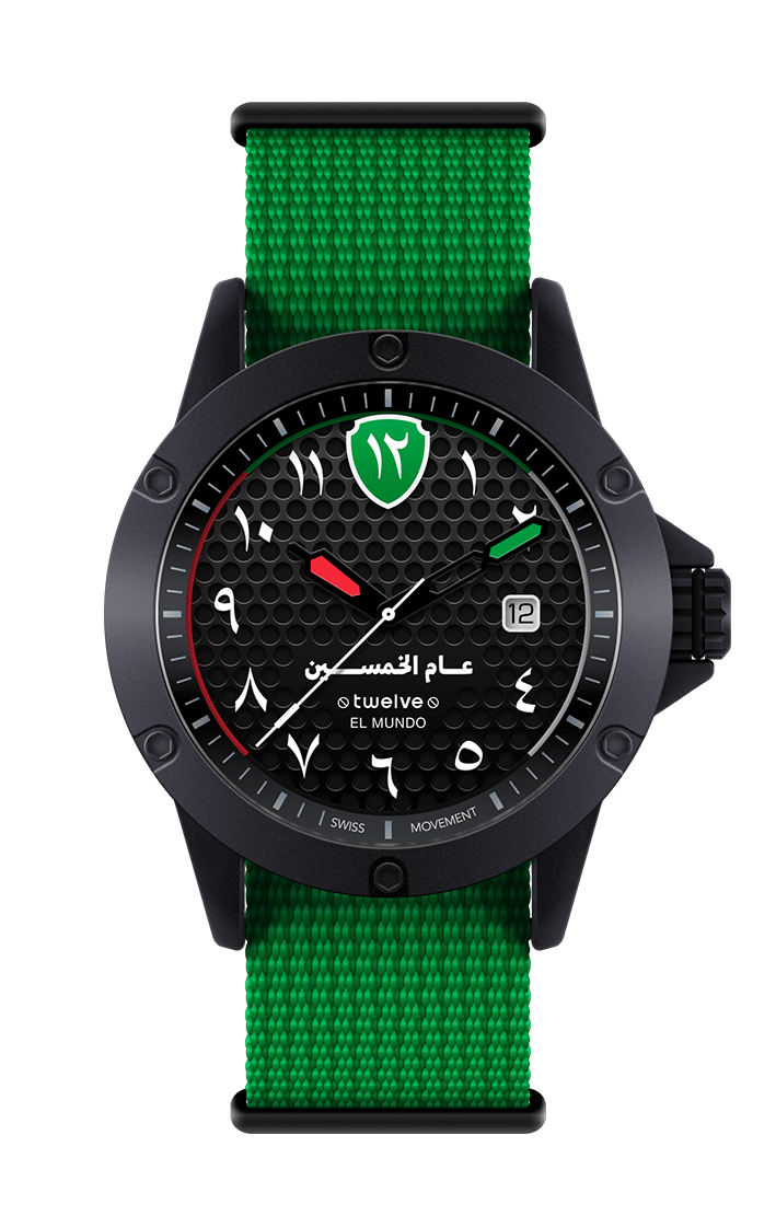 A chic, modern 44mm quartz Swiss movement watch with a colorful textured dial paired with a black rubber strap and one additional colored nato strap to match the dial.